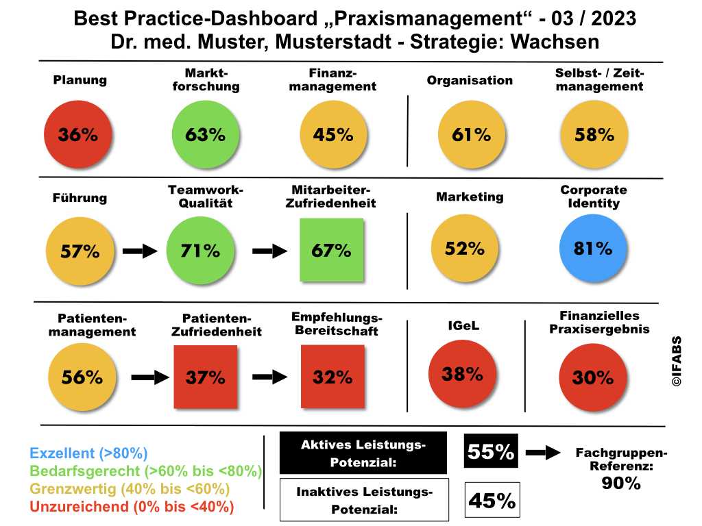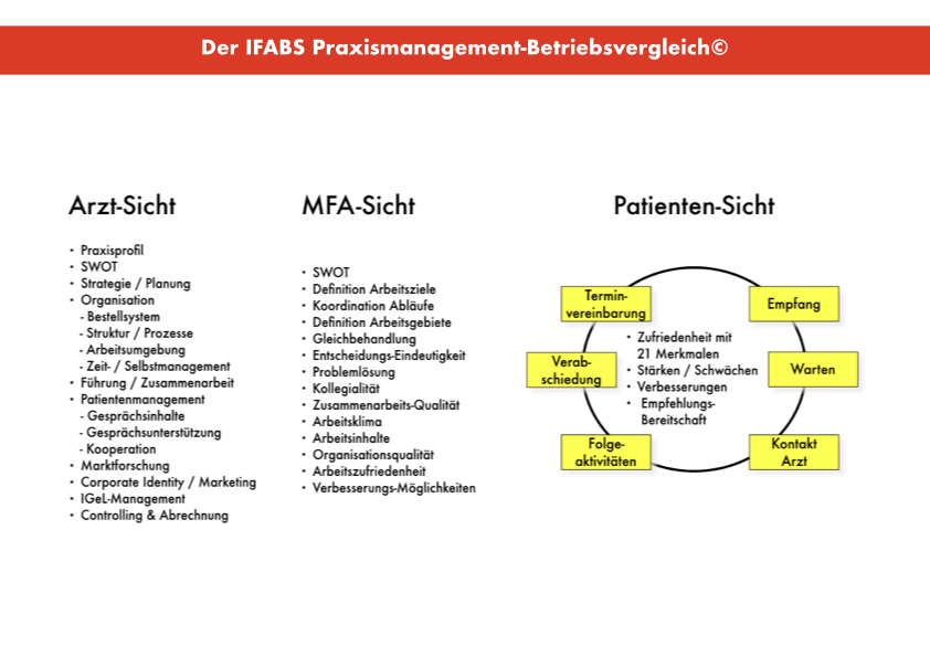 • Abgleich mit den Resultaten, die für einen reibungslos funktionierenden Praxisbetrieb notwendig sind (Best-Practice-Benchmarking)