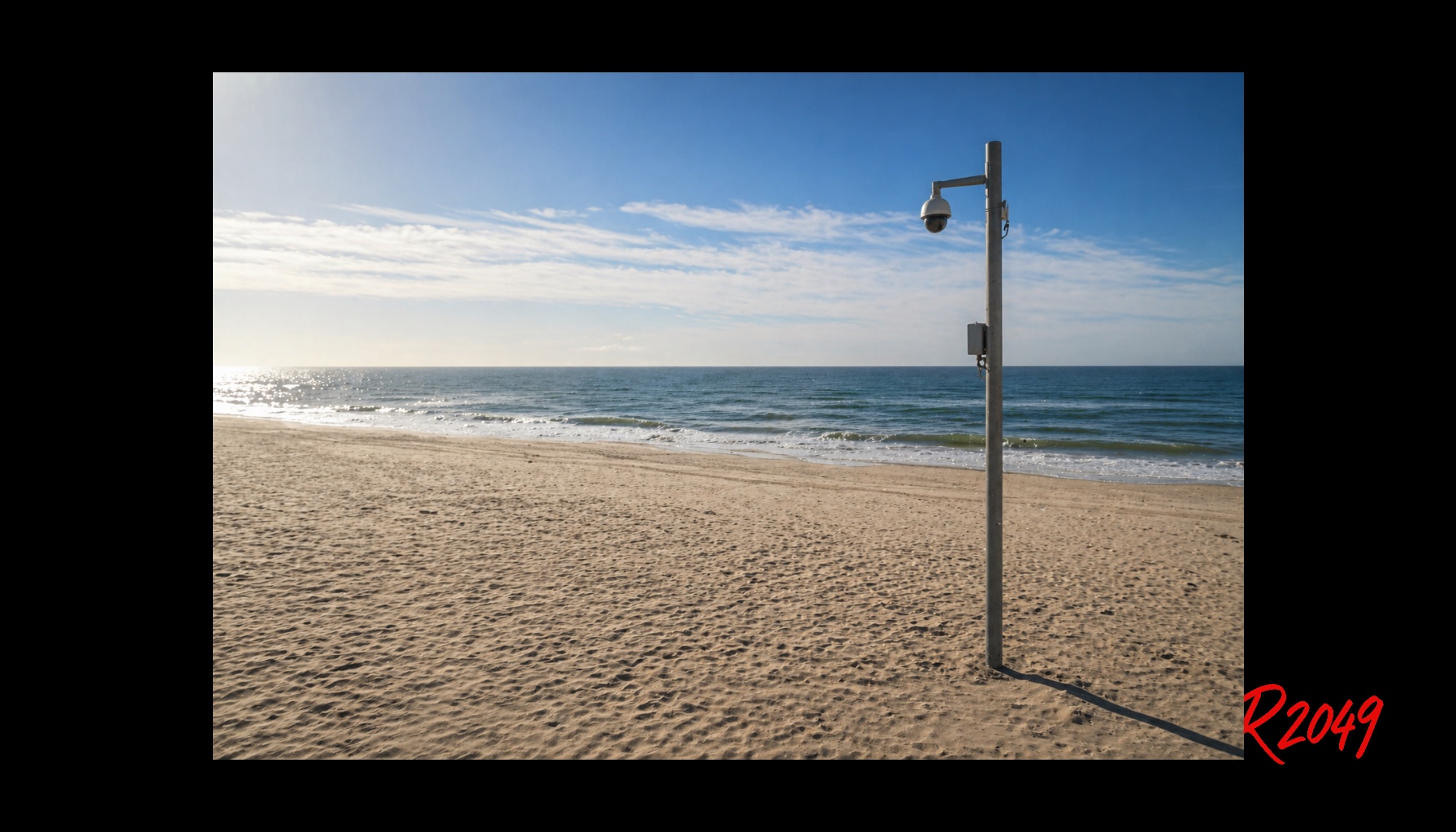 This entry from the R2049 archives examines distributed surveillance systems, passive monitoring infrastructure, and structural control environments through the presence of a single camera in an otherwise empty coastal landscape. It highlights how visibility is no longer dependent on human attention, but on positioning, persistence, and systemic integration. The scene reflects broader dynamics of ambient surveillance, infrastructural authority, and asymmetrical observation, where monitoring exists without interaction, and control operates without intervention.