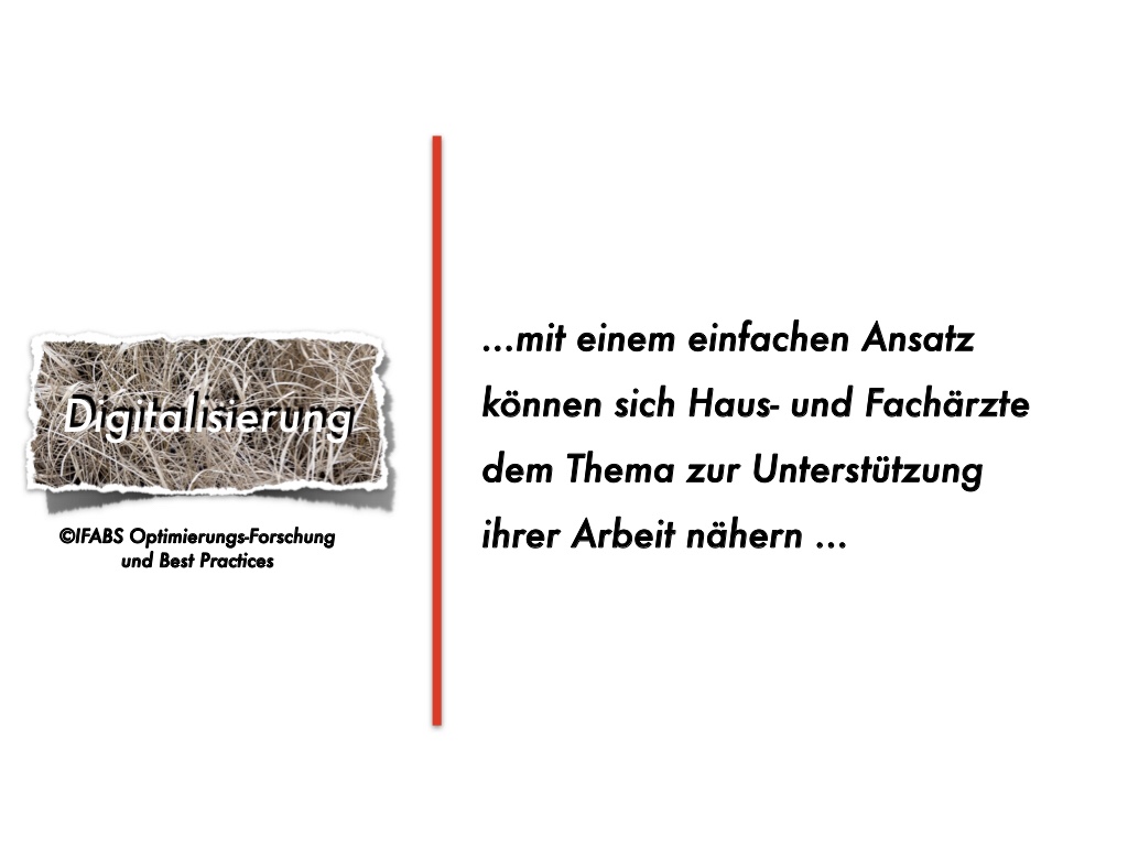 Ein im Kontext der Digitalisierung immer wieder herausgestellter und erwarteter positiver Aspekt ist die Arbeitsentlastung für Ärzte und Medizinische Fachangestellte. Doch in der Arbeits-Gesamtbilanz stehen den Tätigkeiten, die durch die Automatisierung wegfallen, neu hinzukommende Arbeiten gegenüber.
