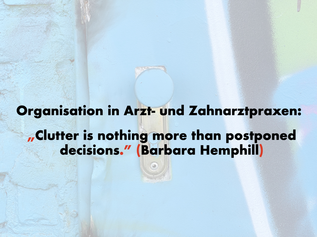 Unordnung, Durcheinander, Chaos: Praxismanagement-Betriebsvergleiche zeigen, dass etwa 60% der Medizinischen und Zahnmedizinischen Fachangestellten diese Defizite bei ihrer täglichen Arbeit beklagen. Eine Vermeidung wäre einfach möglich, denn die Ursachen liegen praxisintern.