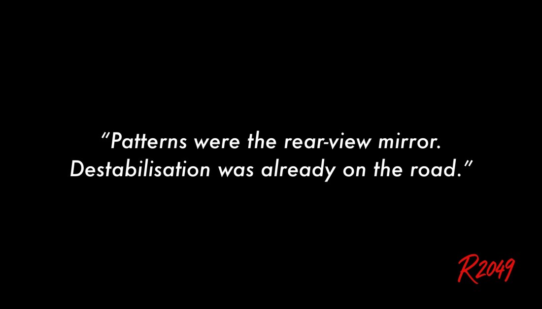 This R2049 observation reconstructs why “patterns” became an epistemic dead end in organisational analysis, leadership discourse, and human–AI interaction.