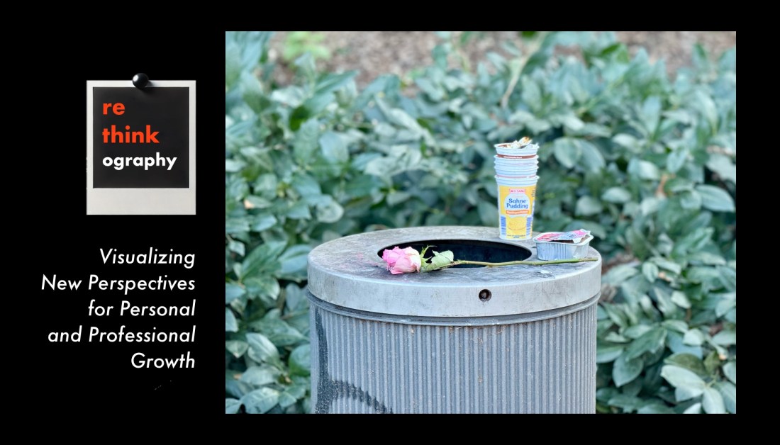 The image captures a scene of subtle melancholy: a withered rose rests atop a waste bin, surrounded by empty pudding cups and other remnants of consumption. Once a symbol of beauty, affection, or even passion, the rose has been stripped of its former significance, now discarded amidst the mundane debris of daily life. This composition serves as a poignant metaphor for transience and adaptation – things once deemed valuable inevitably lose their lustre; beauty fades, while functionality is consumed and disposed of.
