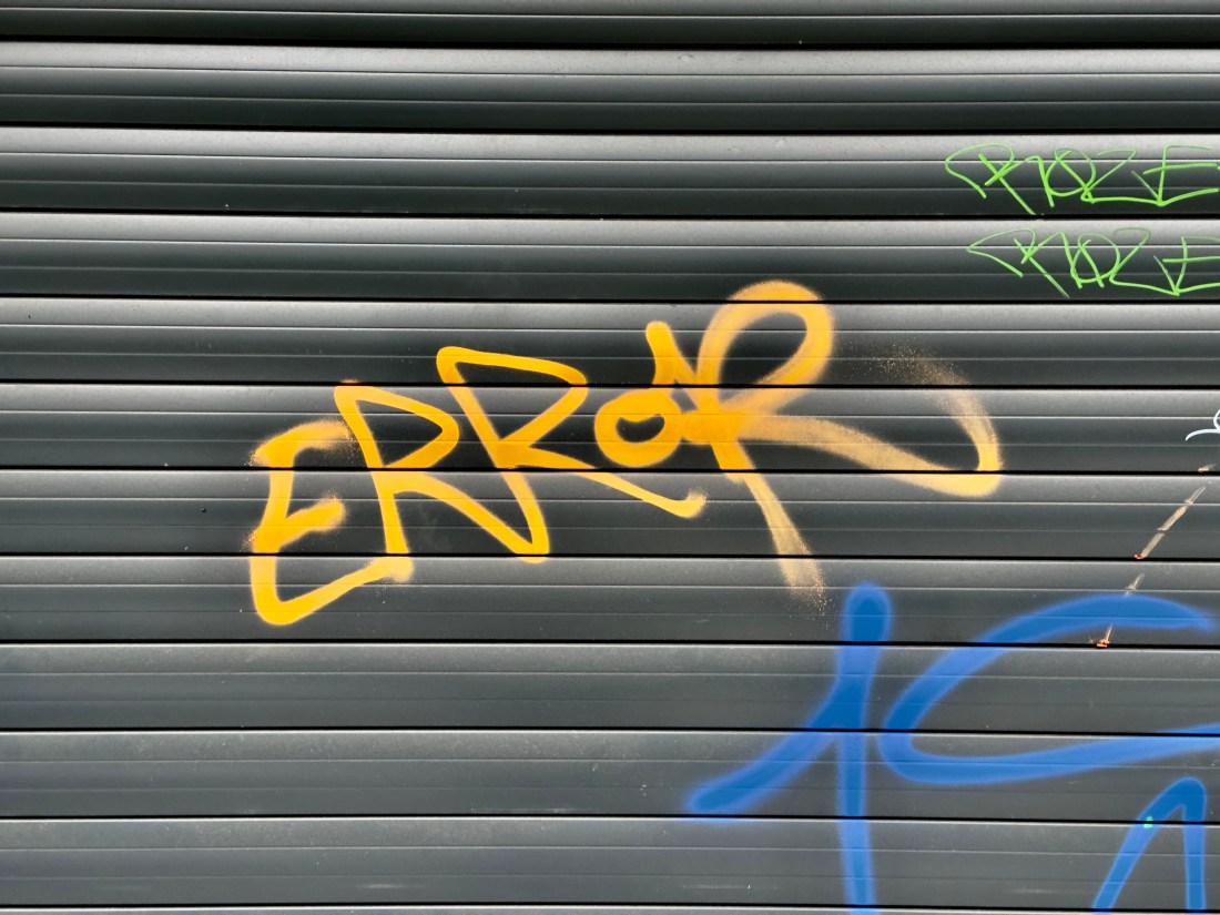 In today’s self-management landscape, we inevitably face the challenge of dealing with mistakes, setbacks, and unforeseen obstacles. The image of the word “Error” spray-painted on a closed, dark grey shutter is a powerful metaphor that teaches us much about the role of mistakes in both life and work.