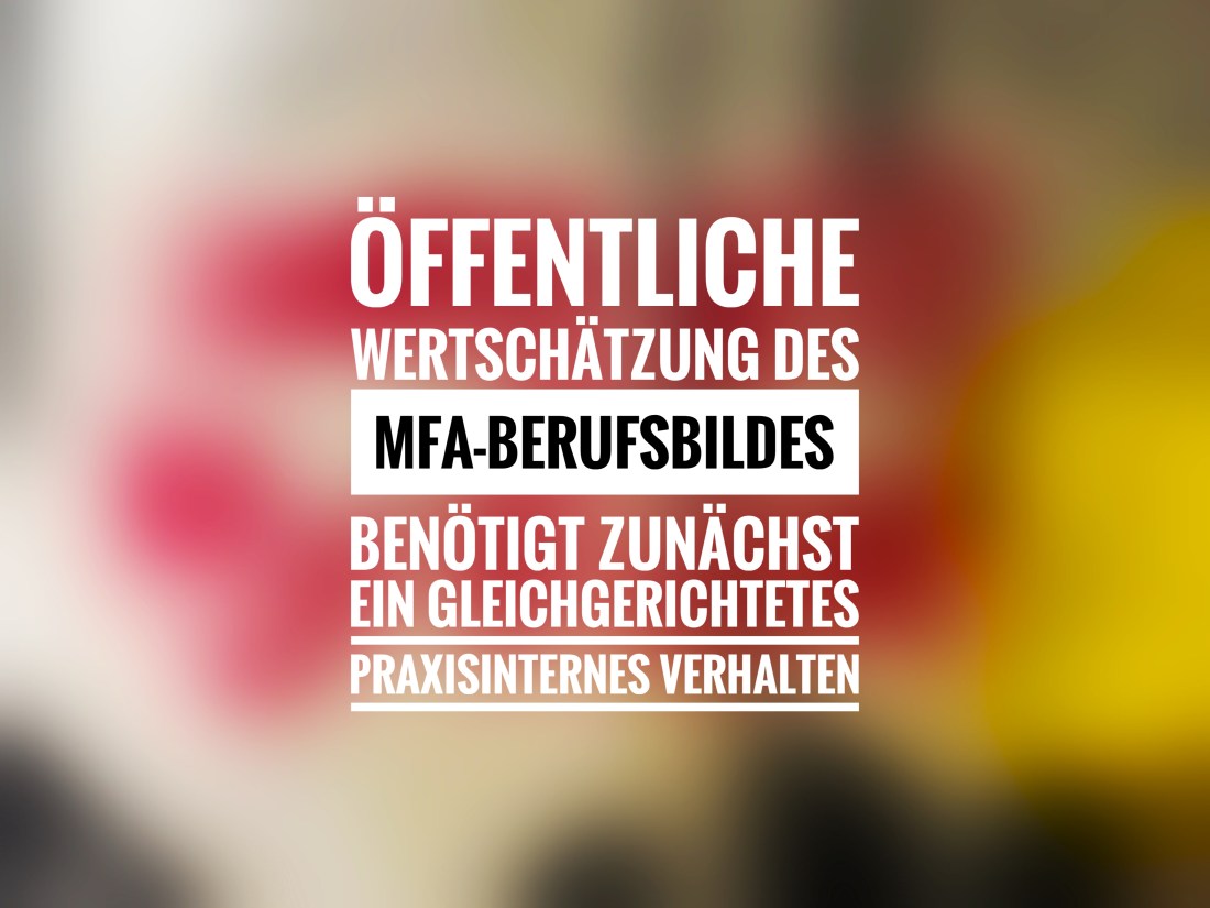Angesichts des Mangels an Medizinischen Fachangestellten wird die Forderung im lauter, alle Möglichkeiten zur Steigerung der Attraktivität und Wertschätzung des Berufsbildes der Medizinischen Fachangestellten in der Öffentlichkeit zu eruieren und rasch umzusetzen, da diese Personengruppe eine der tragenden Säulen des Gesundheits-Systems ist. Ein wesentlicher Aspekt bleibt bei dieser berechtigten Forderung jedoch außen vor: die Wertschätzung durch die Arbeitgeber.