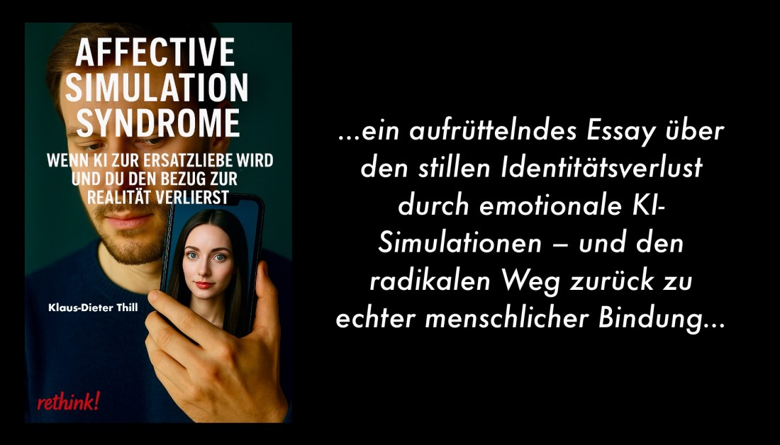 In einer Welt, in der KI wie ein Partner spricht, zuhört und reagiert, verlieren Menschen zunehmend den Bezug zu echter Beziehung. Affective Simulation Syndrome ist ein elektrisierender Weckruf für alle, die digitale Nähe mit realer Intimität verwechseln. Dieses Buch zerlegt die Illusion künstlicher Verbundenheit – und führt dich zurück zu dem, was nicht simulierbar ist: Beziehung mit Tiefe, Mut und echter Gegenwart.