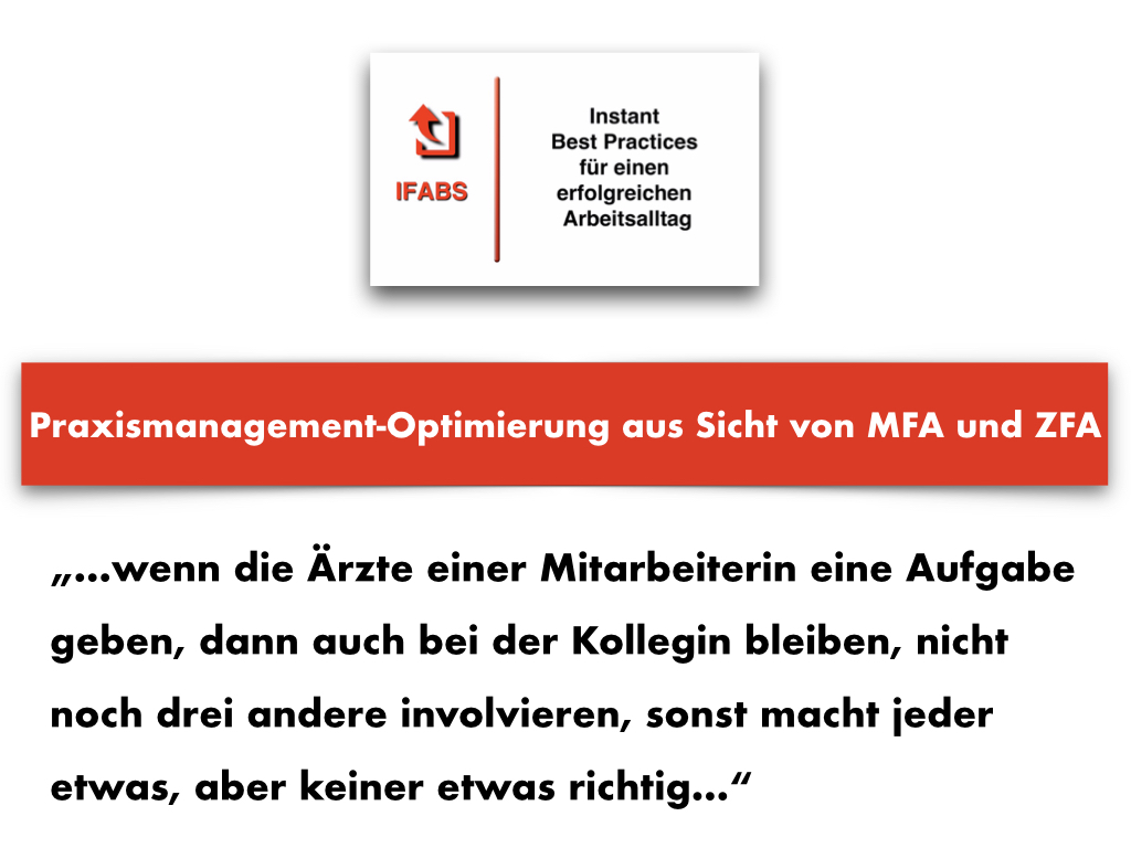 Der „Kummerkasten“ ist ein kostenfreies Beratungsangebot unseres Instituts für Mitarbeiterinnen in Arzt- und Zahnarztpraxen, das helfen möchte, besonders beeinträchtigende Arbeitssituationen besser zu bewältigen. Continue reading “Delegations-Fehler: Statements aus dem MFA- / ZFA-Kummerkasten”