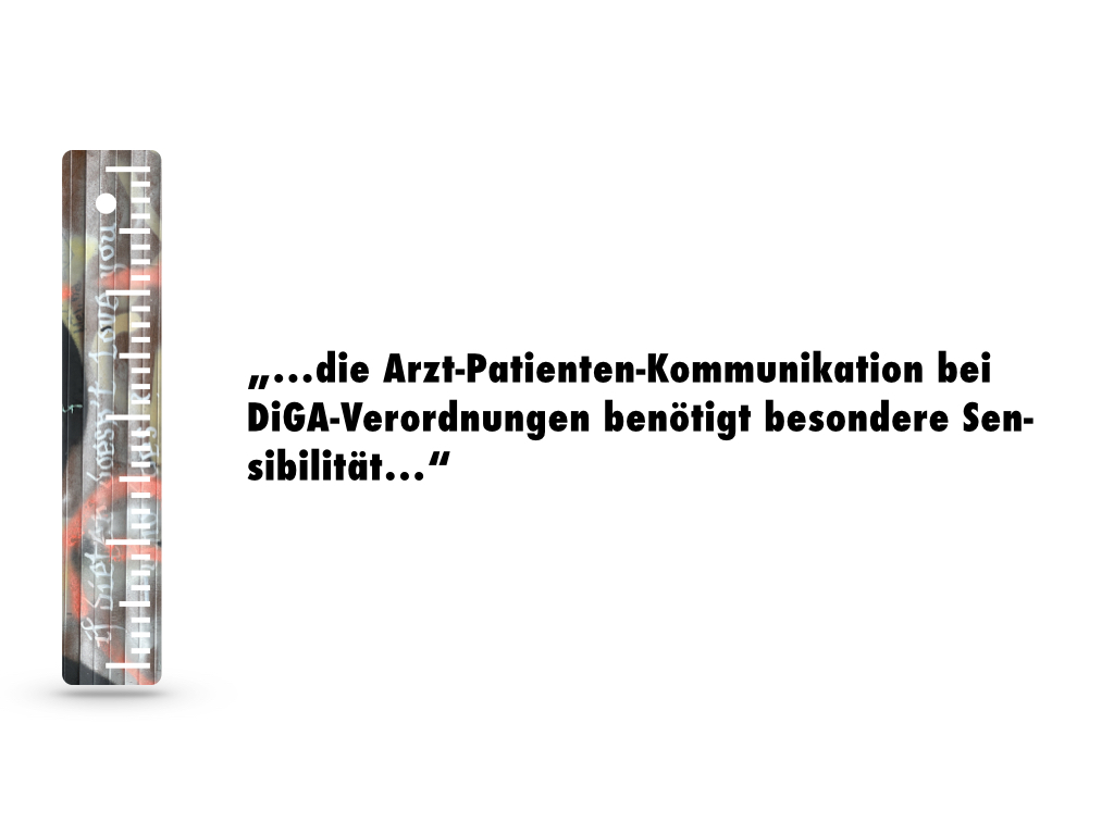 Ein Teil der Arzt-Anfragen in unserem Institut betrifft die Patienten-Kommunikation bei der Verordnung von Digitalen Gesundheitsanwendungen (DiGA). Gerade hierbei kommt es darauf an, ihnen eine Wertigkeit zuzumessen, damit sie auch tatsächlich und längerfristig eingesetzt werden. Eine unbedachte Formulierung kann dieses Ziel jedoch schnell konterkarieren.