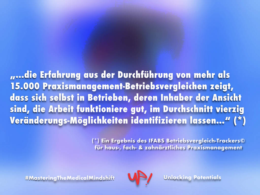 Praxismanagement-Betriebsvergleiche zeigen, dass Haus- und Fachärzte nur die Hälfte des Best Practice-Standards der Praxisführung einsetzen. Der Begriff umfasst diejenigen Instrumente, Regelungen und Verhaltensweisen, die für eine auch unter wechselnden Belastungen reibungslos funktionierende Arbeit notwendig sind. Dabei können bereits kleine Veränderungen zu erheblichen positiven effizienz- und produktivitätsfördernden Effekten führen, zum Beispiel in der Patienten-Kommunikation.