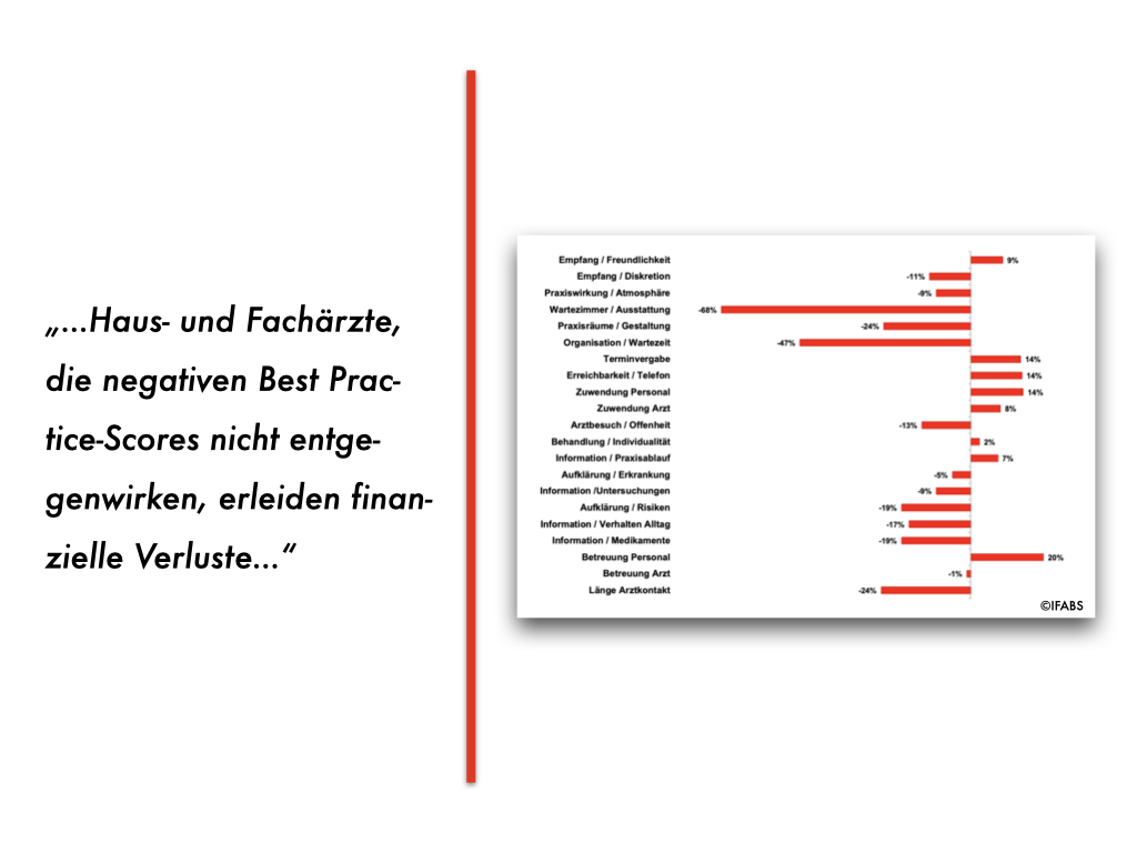 Vor dem Hintergrund der zunehmenden internetbasierten Vergleichbarkeit und Leistungs-Transparenz von Arztpraxen sowie der sich verändernden Patienten-Einstellungen wird ein reibungslos funktionierendes Praxismanagement immer mehr zu einem zentralen Wettbewerbsfaktor für Haus- und Fachärzte. Eine Querschnittsanalyse der Resultate aus Praxismanagement-Betriebsvergleichen© zeigt, wie ausgeprägt die Praxismanagement-Qualität in der Fachgruppe „Orthopäden“ ist. Continue reading “Das Management in orthopädischen Arztpraxen im Best-Practice-Check”