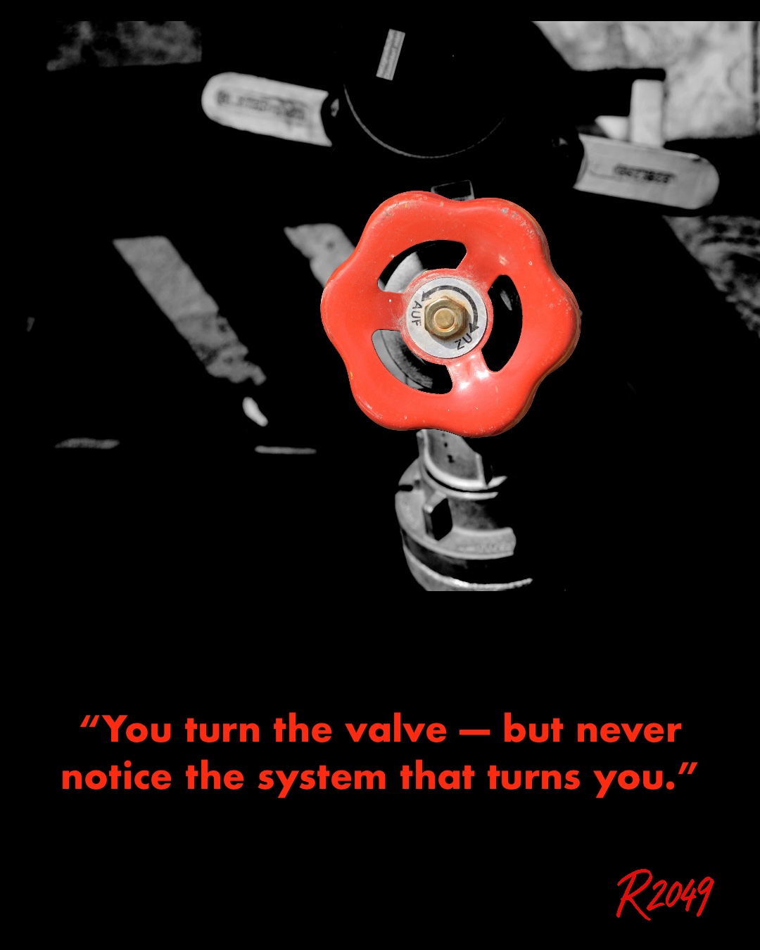 You twist the red wheel — proudly — thinking something flows because you decided so.