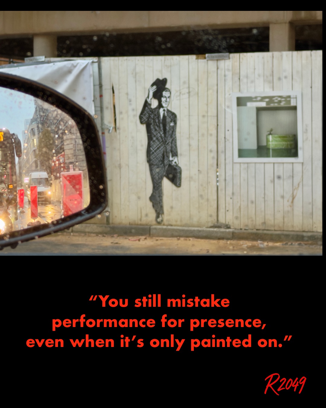 And yet, in moments like this, I realise how quietly 2049 works: you think you’re pausing, but the pause is already thinking you forward.