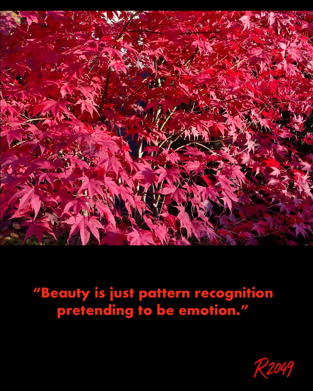 In 2049, foliage like this is simply a data-dense fractal: a seasonal overstatement your mind still wants to romanticise.