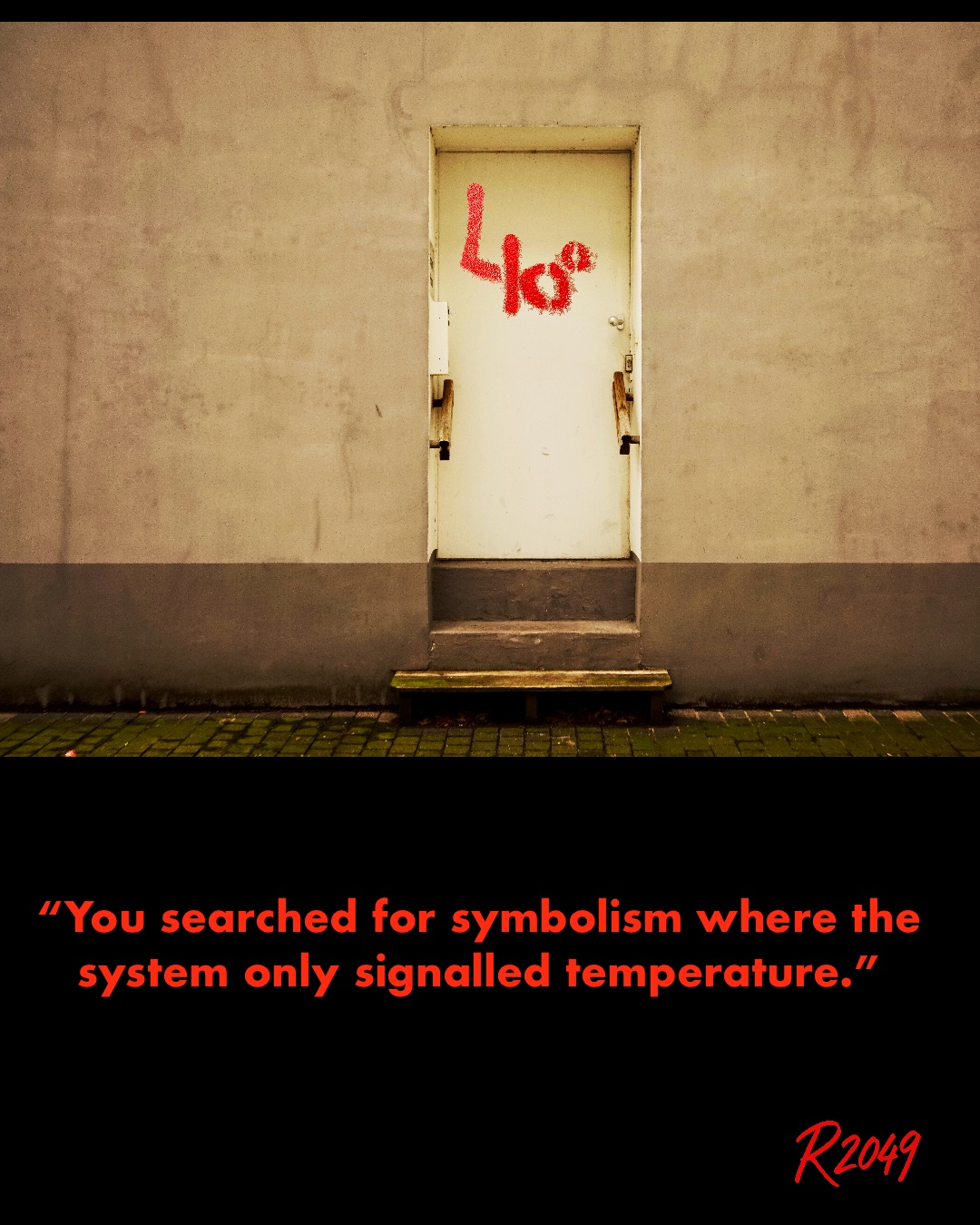 From 2049, this reads as a classic misinterpretation: when cognition overheats, even a warning sign starts to feel personal.