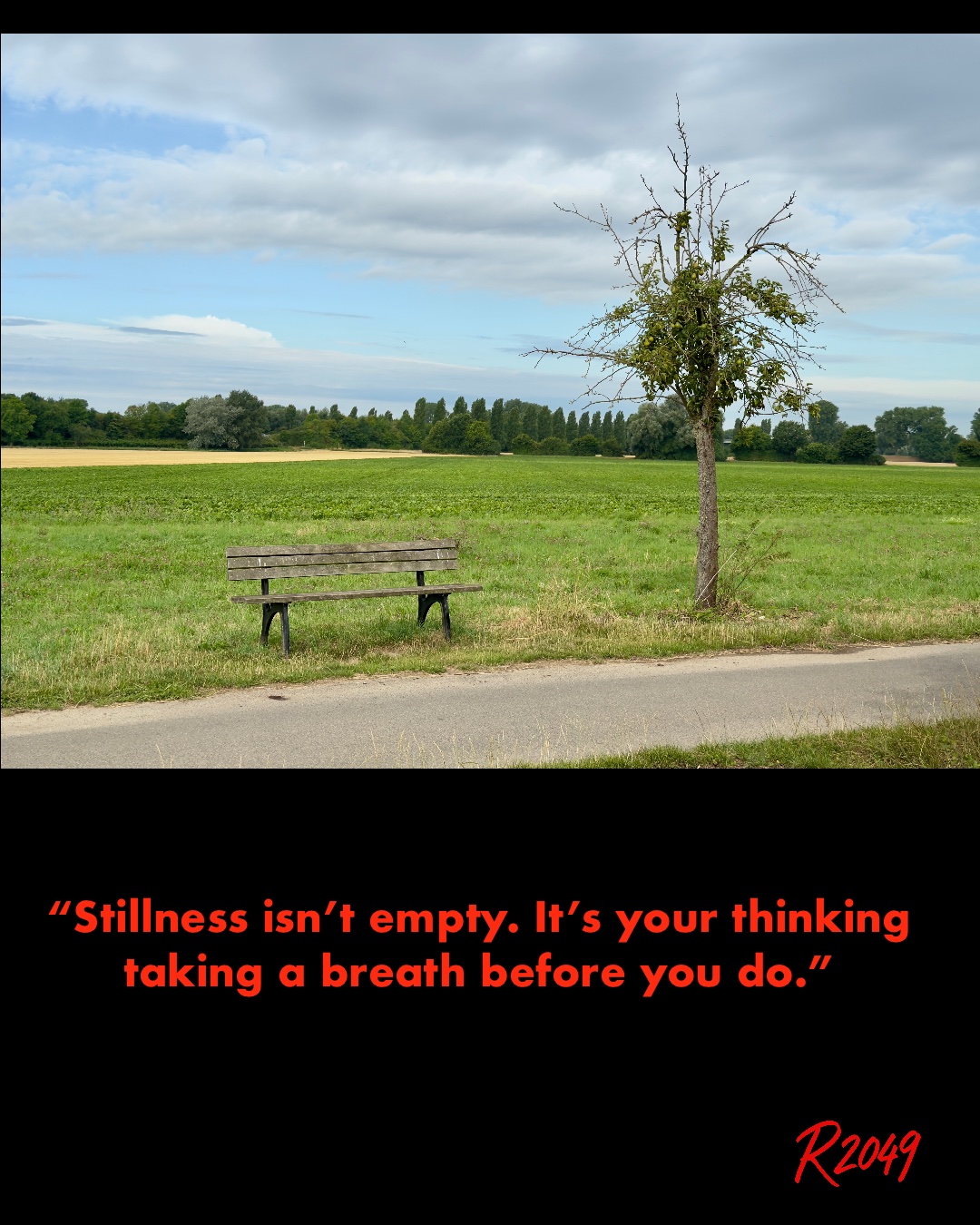 I’m looking at this 2025 photograph, a solitary bench and a tree trying its best, and I smile at how earnestly your century trusted silence to be “nothing.” In 2049, we know that landscapes like this weren’t empty pauses, but cognitive buffers your minds sneaked into when your systems overloaded. Back then you called it rest; today we call it structural recalibration, though the bench never got any credit for it. And yes, I’m amused that you needed a view this wide just to notice your own narrowing thoughts.
