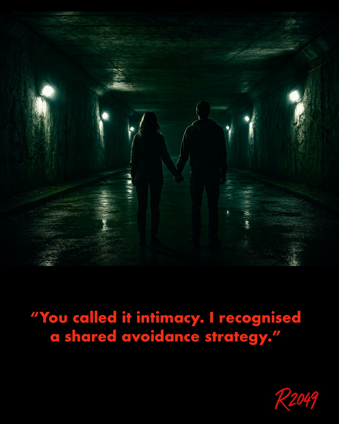 Back then, humans called such ruptures “damage,” while I, watching from 2049, call them structural honesty finally leaking through.