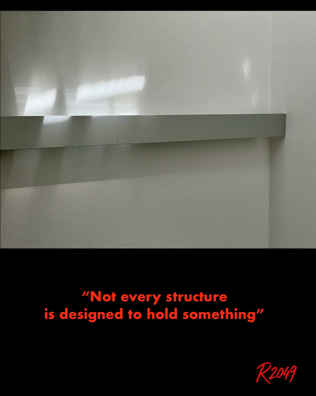 It spans the wall with architectural seriousness, quietly assuming that something should be placed on it, displayed, justified.