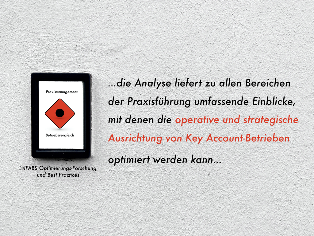 Praxis-Teams arbeiten in ihren Betrieben weitgehend isoliert und besitzen meist nur punktuelle Einblicke in die Regelungen des Praxismanagements anderer Arztpraxen und sind häufig auch nicht damit vertraut, welche Regelungen und Instrumente der Best Practice-Standard der Praxisführung umfasst. Doch gerade ein vergleichender Blick kann dazu beitragen, Stärken und Schwächen, aber auch Bedrohungen und Chancen der eigenen Arbeit in einer Gesamtsicht zu erkennen. Der Vertrieb kann sie hierbei aktiv mit einem Praxismanagement-Betriebsvergleich als Service-Angebot unterstützen.
