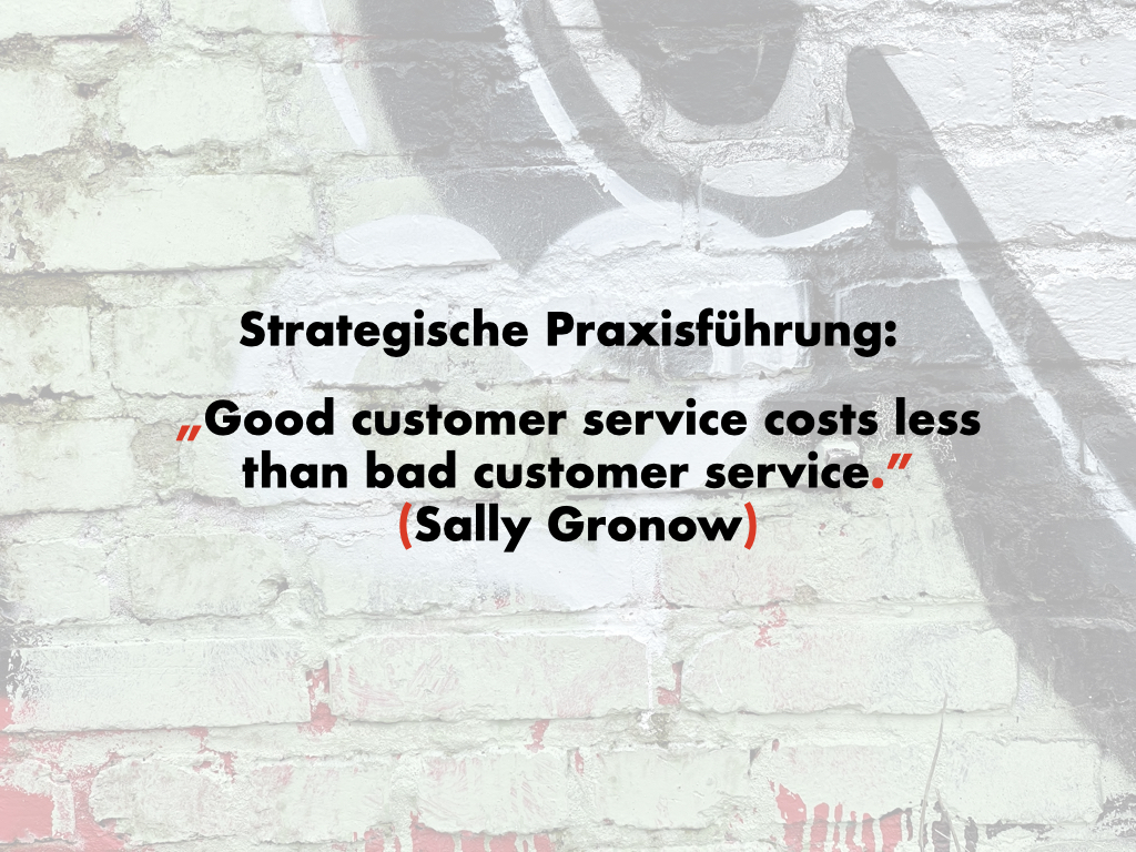 Das „Tragische“ der Situation: die meisten Anpassungen des Praxismanagements wären in Eigenregie ohne externe Hilfe umsetzbar, das eigentlich Problem ist die Identifizierung der Handlungsbereiche. Eine Hilfe an dieser Stelle führt damit automatisch zu deutlichen Steigerungen der Leistungsfähigkeit von Praxisteams, ohne dass ein weiteres Engagement notwendig wäre, der ideale Service-Ansatz für Marketing und Vertrieb.