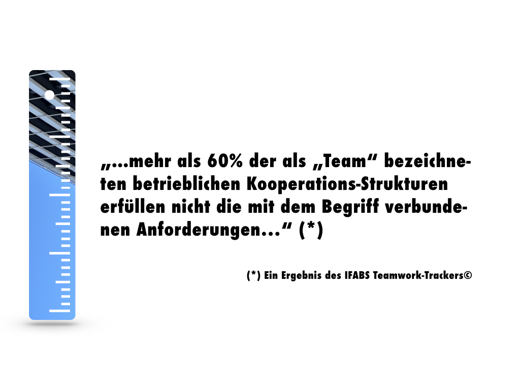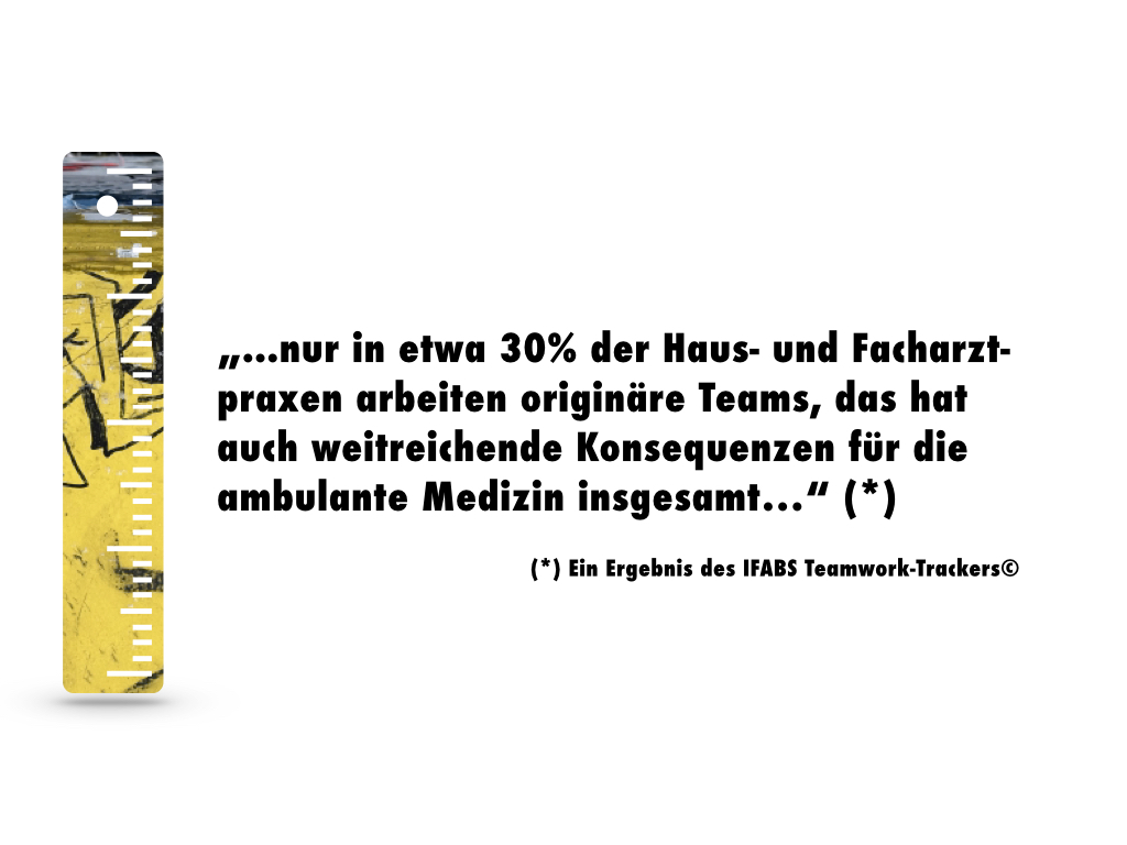 Die Resultate des IFABS Teamwork-Trackers© zeigen, dass in Haus- und Facharztpraxen größtenteils keine „echten“ Teams arbeiten, sondern lediglich Gruppen. Dadurch schränken Praxisinhaber fahrlässig die Effizienz und Produktivität ihrer Betriebe ein, schmälern die Qualität der Patientenversorgung, steigern die Kosten und reduzieren ihren Erfolg. Aggregiert betrachtet leidet dadurch aber auch die Leistungsfähigkeit der ambulanten Medizin insgesamt.